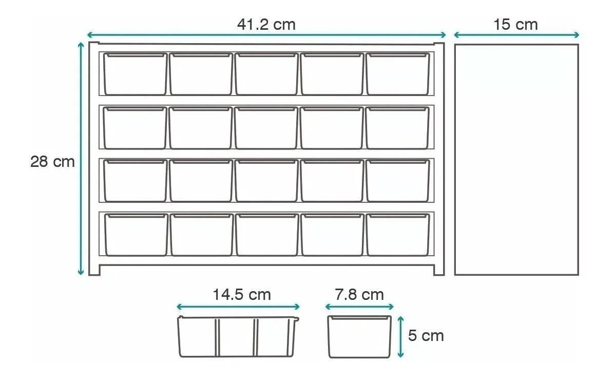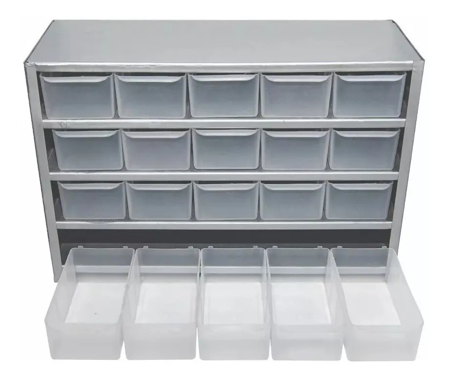 Medidas de las Gabetas de plástico 7.5 cms de frente x 15 cms de largo x 5 cms de altura.